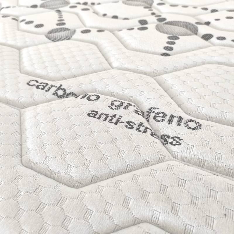 El colchón Grafeno combina muelles ensacados en una funda TST con un muelle interior BOX HR (33 kg/m³) para ofrecer un excelente soporte y durabilidad. La capa superior de tejido elástico y sistema de gel Nano Graphene alivia la presión y crea una superficie cómoda y adaptable. La base ventilada de fibra atérmica 3D garantiza una circulación óptima del aire. El borde transpirable con tecnología Tech Fresh mantiene una temperatura agradable para un sueño reparador.