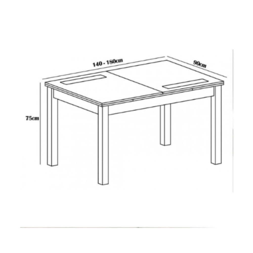 - Formato: mesa de comedor corredera.