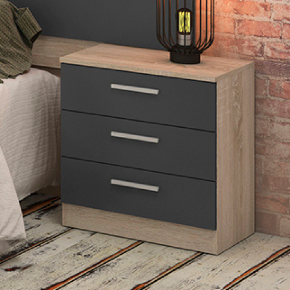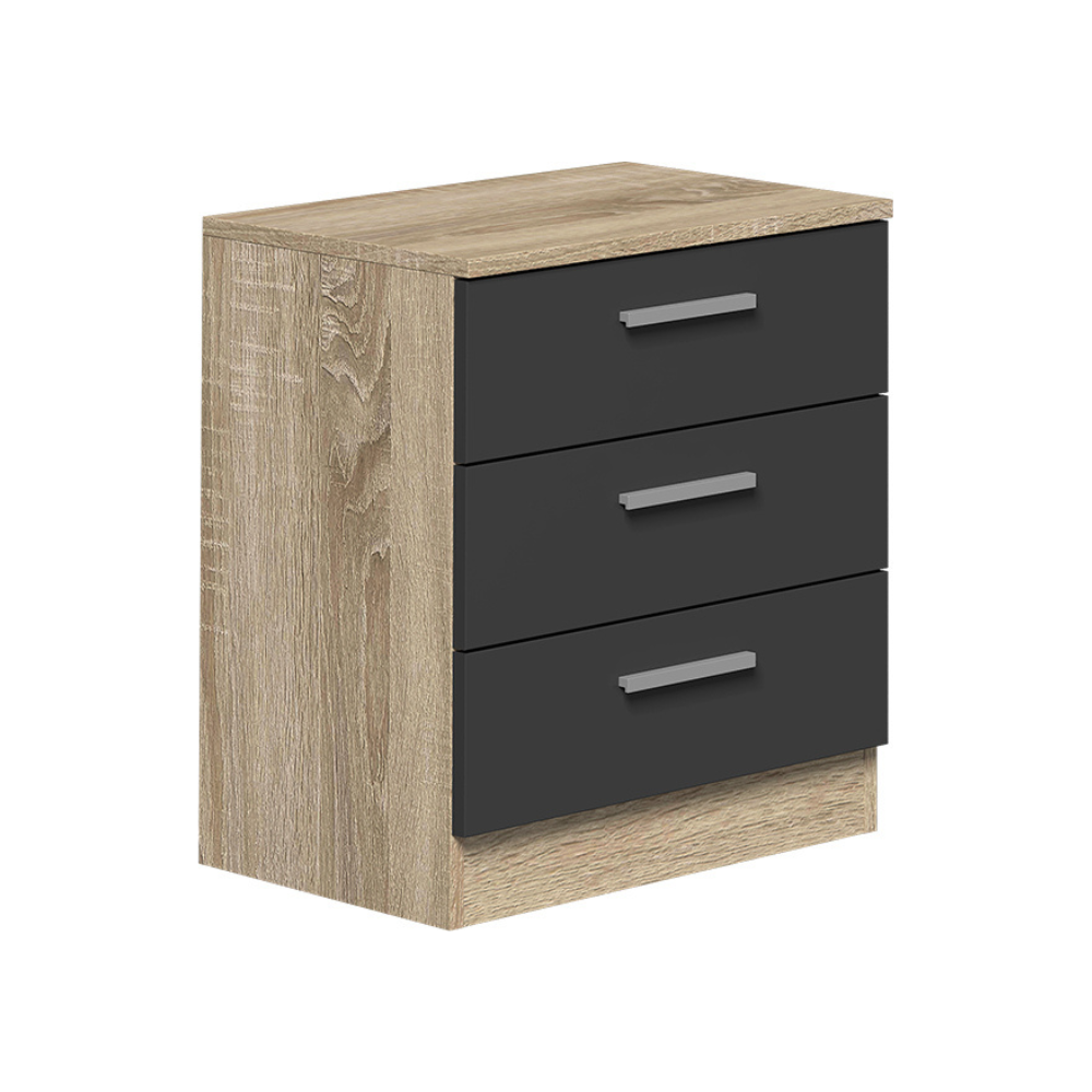 Mesita De Noche Monika 3 Cajones Cambria-Grafito 01-C (55x50x35 cm)