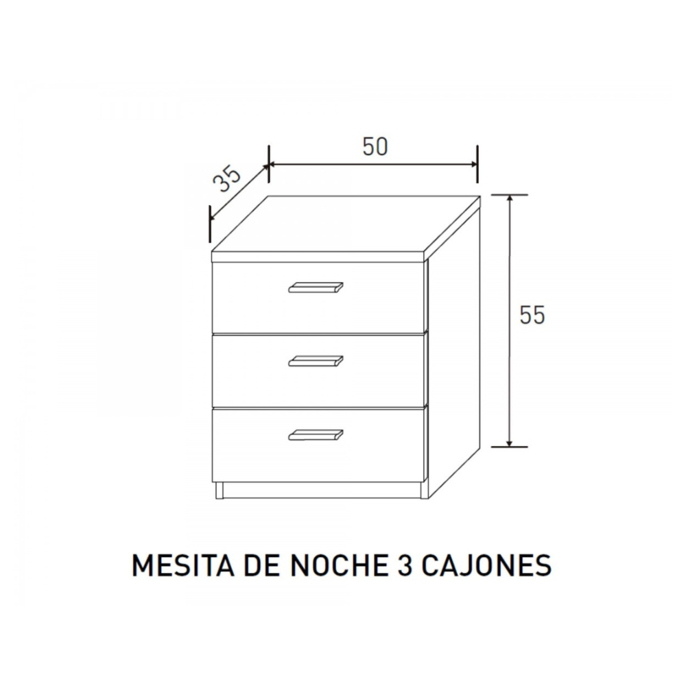- Formato: Mesilla de noche con 3 cajones.