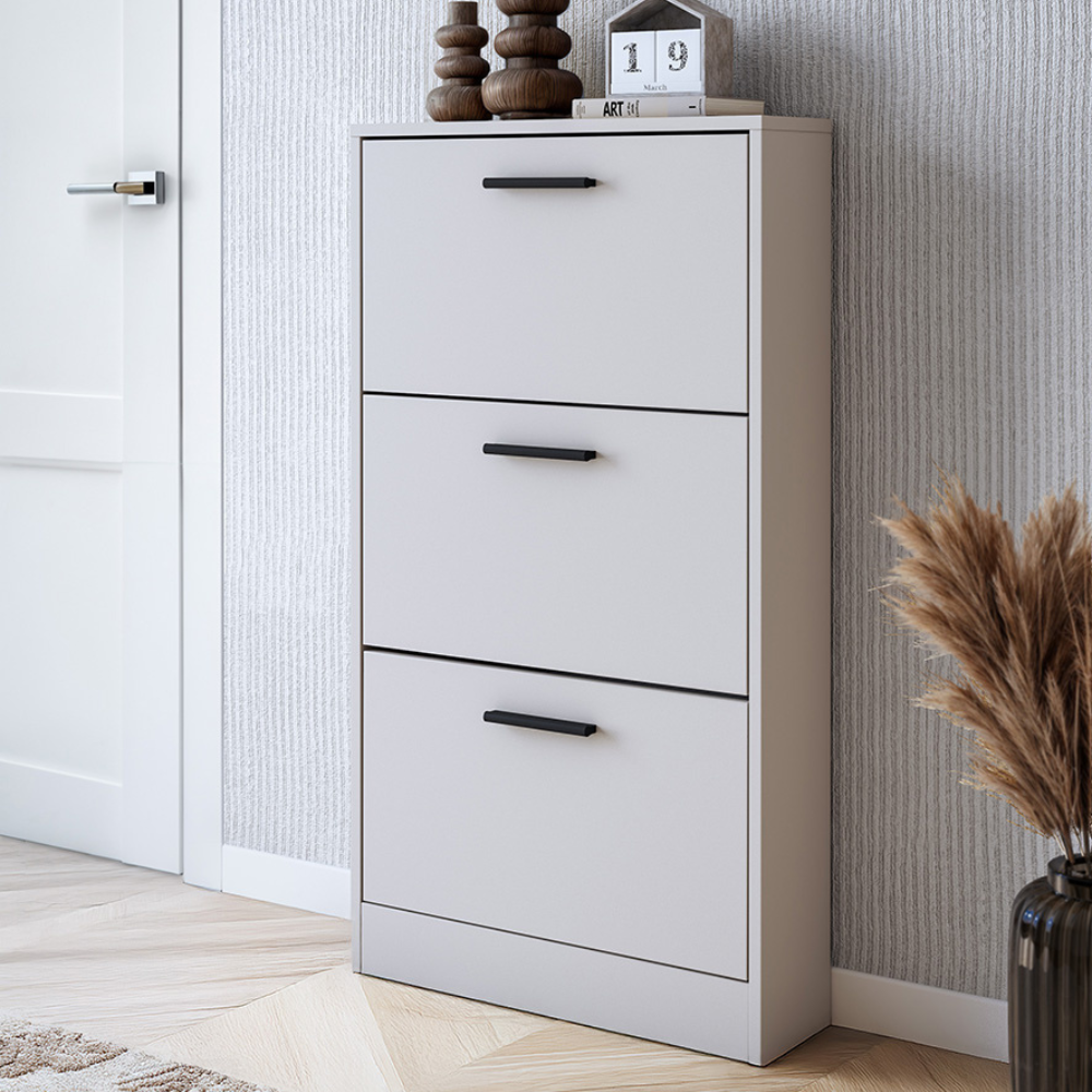 El zapatero Aura con tres compartimentos proporciona aún más espacio de almacenamiento para ayudarle a mantener su casa ordenada. Su diseño moderno y compacto es ideal para vestíbulos, pasillos o dormitorios, ahorrando espacio. Fabricado con materiales resistentes, garantiza durabilidad y comodidad de uso.